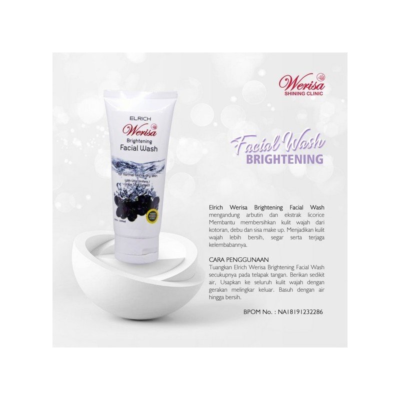 Elrich Brightening Facial Wash mengandung arbutin dan ekstrak licorice Membantu membersihkan kulit wajah dari kotoran, debu dan sisa make up. Menjadikan kulit wajah lebih bersih, cerah serta terjaga kelembabannya.